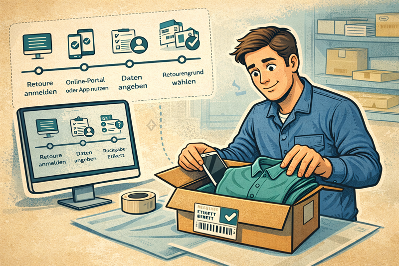 Nach der Anmeldung folgt die Vorbereitung der Retoure für den Versand. Dieser Schritt entscheidet darüber, ob die Ware sicher beim Händler ankommt und problemlos akzeptiert wird.